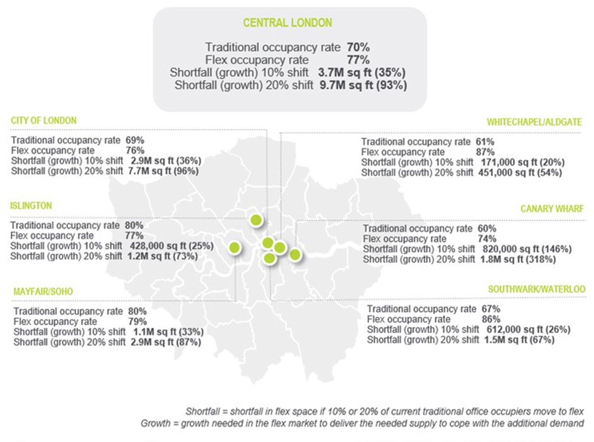 If just 10% of corporate office portfolios moved to flexible workspace, then there would be a shortfall of nearly 40m sq ft, according to research from The Instant Group and EG.