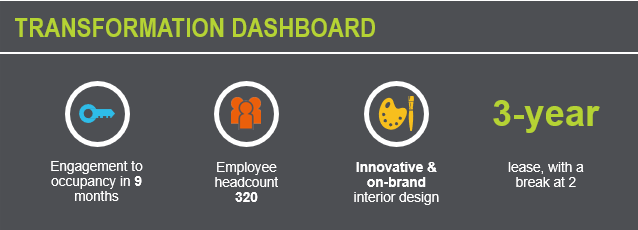 - Client’s existing sub-standard workspace was adversely impacting the engagement and retention of a skilled workforce