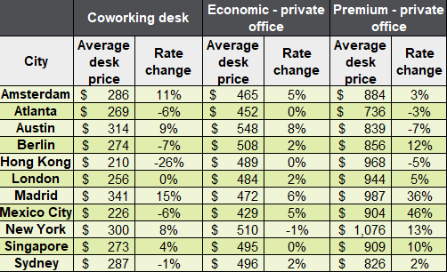 Across the flex sector, office providers are experiencing downward pressure on prices, but there are still pockets where prices are growing. In particular, premium quality workspaces are seeing an uptick in pricing across the global office market.