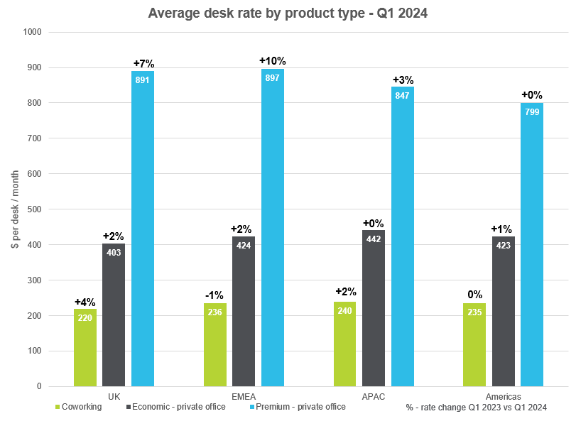 Our latest data indicates that best-in-class workspaces achieved prices up to 51% above the global market average in Q1 2024.